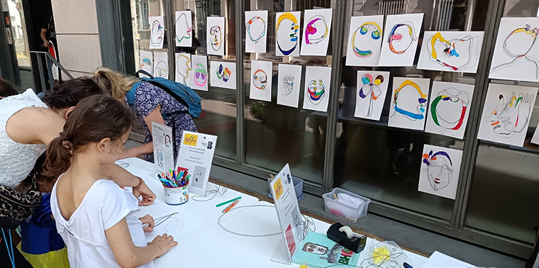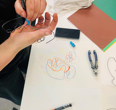 ATELIER « TRAIT POUR TRAIT », VISAGE EN FIL DE FER ET COULEURS